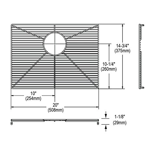 20 " L x 14 3 / 4 " Wワイヤーラックして排水ドレン付きエルケイ下部のグリッド保護を開いてシンクの底で、下部のグリッドに合うようにカスタムデザインされエルケイ仕切られます。寸法:20 " × 14 3 / 4 " W x 1 1 / 8 " H
