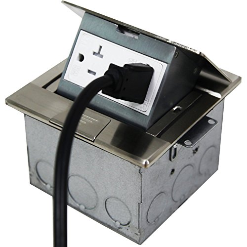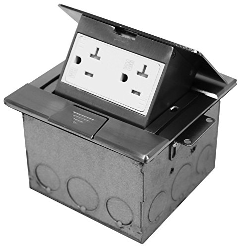 - Nickel plated brass floor box, 20A duplex receptacle, free pre galvanized steel junction box included