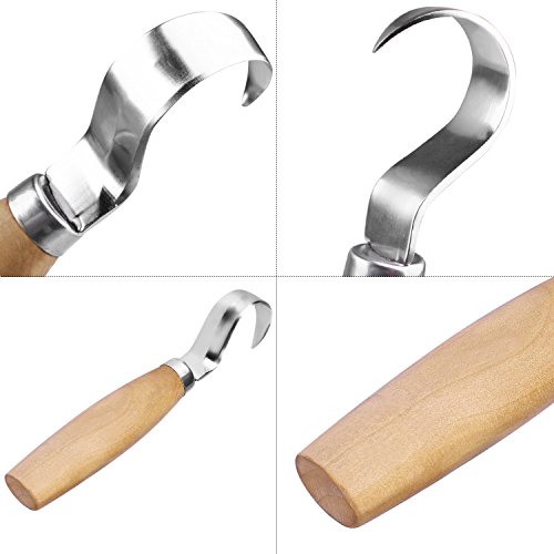 - プロデザイン:フックナイフは木のスプーン、ボウル、カップと同様の凹形の形のために具体的に設計されています。またはあなたの木の彫刻プロジェクトに詳細を丸めたエッジが必要です。人間工学設計はあなたがおそらくする彫刻の詳細のほとんど処理を助けています。