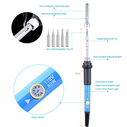 - 【特別な特徴はんだごて】溶接ガンのスレッドと銅鉄の先端、高温抵抗性を有し、焼損するのは容易ではない。はんだごてのペンのブルーの体色でわずかに温度につき変更されます。温度が高い、ペン体のより明るいライトブルー色になります。200-450℃から調節可能な温度。はんだに適した温度を選択してください。
