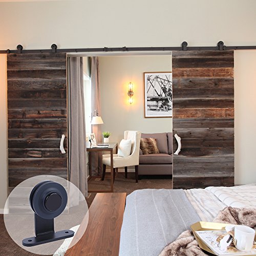 CCJH アメリカンカントリースタイルスチールスライディング物置ドア 取付金具 インテリア ダブルドアブラック (10フィート) ブラック A10DTSFBA