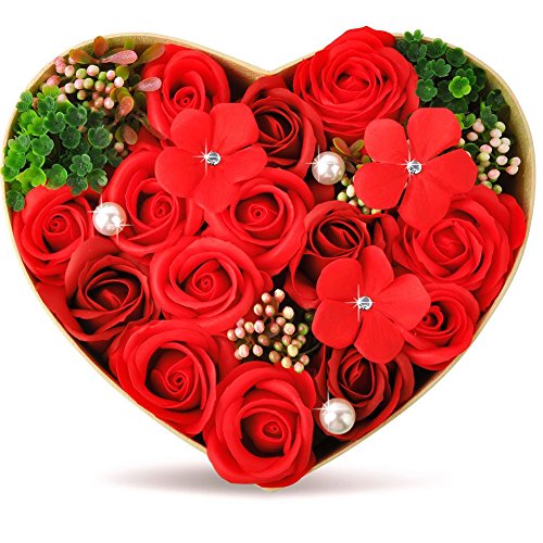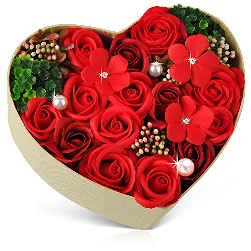 バラ型ソープフラワー ハートフラワー形状ギフトボックス 誕生日 母の日 記念日 先生の日 バレンタインデー 昇進 転居など最適としてのプレゼント