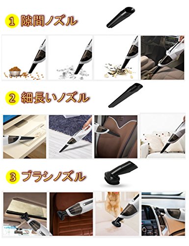 - 【三つのノズル付き】隙間ノズル、細長いノズル、ブラシノズルという3種類のアタッチメントが付属しています。キーボード、車の座席やソファーのすき間など届きにくい所を簡単にきれいに掃除できます。