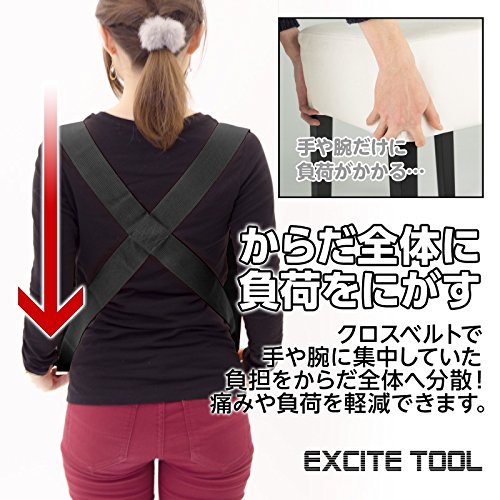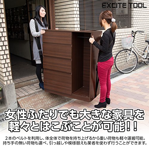 EXCITE TOOL 引っ越しベルト 運搬ベルト 女性2人でも 重たい荷物を楽々運べる 移動ベルト 体全体に重みを分散 負荷軽減 軽々運べる キャリーベルト 引越し/模様替え/大掃除 家具の移動に最適 丈夫 安全 取り付け簡単 長さ調整可能 持ち運び便利 オリジナルケース付き (黒)