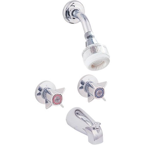 Product Description From EZ-FLO's Basic-N-Brass Collection, the Tub & Shower Set is practical and attractive and will complement a wide variety of bathroom decor. This shower set comes with two 4-wing chrome brass handles, allowing you to precisely control water flow and temperature. This shower set is designed for every day basic use and offers an economic value. From the Manufacturer From EZ-FLO's Basic-N-Brass Collection, the Tub & Shower Set is practical and attractive and will complement a wide variety of bathroom decor. This shower set comes with two 4-wing chrome brass handles, allowing you to precisely control water flow and temperature. This shower set is designed for every day basic use and offers an economic value.