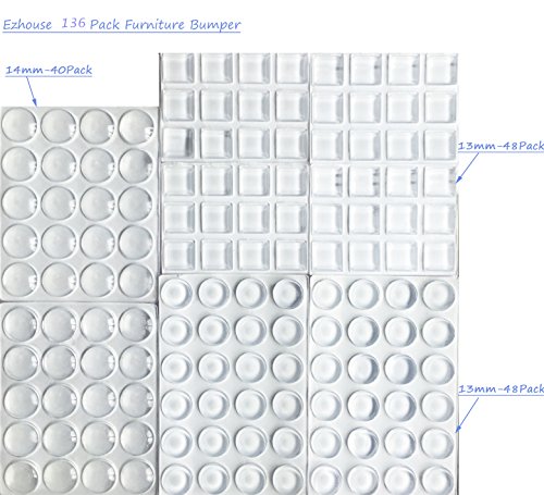 136-pack透明ゴムバンパー、48パック13 mmラウンドキッチンキャビネットドアバッファパッドと48パック13 mm Sqaure家具バンパーPlus 40-pack 14 mm Hemisphericalバッファ、自己粘着家具停止パッド