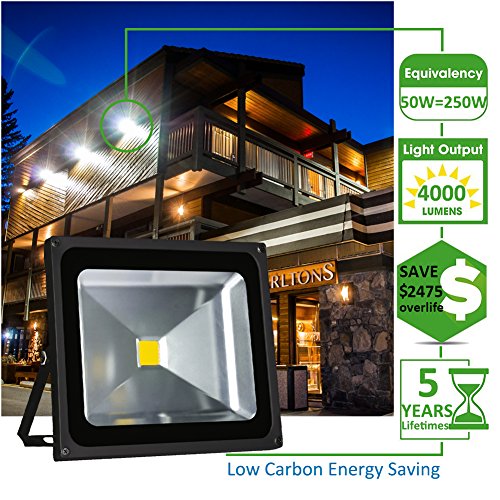 Ledmo ?LEDフラッドライト、防水規格ip65屋外、デイライトホワイト、6000 K、4000lm、投光照明 50W EZ855
