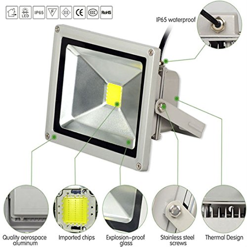 LEDMO® 50W LED Flood Lights, Waterproof IP65 for outdoor, Daylight White, 6000K, 4000lm, 250W Halogen Equivalent, Security Lights, Floodlight [並行輸入品]