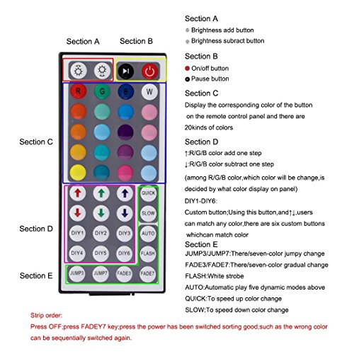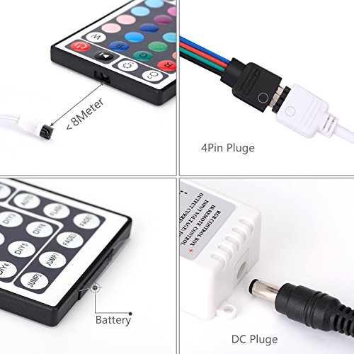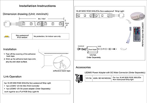 LEDMO 12V フレキシブルSMD 5050 RGB LEDストリップライト LEDテープ マルチカラー LED300個 非防水 ライトストリップ 色の変化 16.4フィート/5mストリップパック 44 Key Remote Contoller EZ910