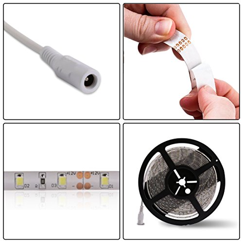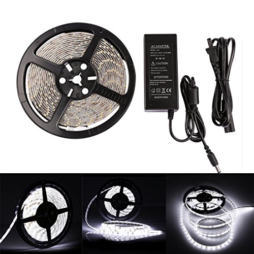 LEDMO SMD 2835 LEDs Waterproof Flexible LED Strip Lights, DC 12V LED Light Strips, 300 Units, Cool White 6000K, 15 Lumen/LED, LED Tape with a 12V 5A (60W) Power Supply [並行輸入品]