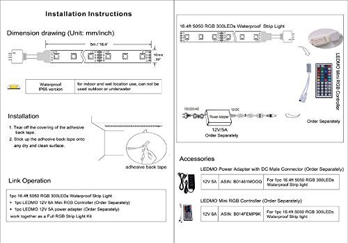 LEDMO 12V Flexible SMD 5050 RGB LED Strip Lights, LED Tape, Multi-colors, 300 LEDs, Non-waterproof, Light Strips, Color Changing, Pack of 16.4ft/5m Strips [並行輸入品]