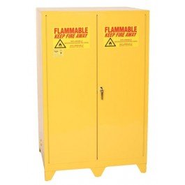 The Eagle Model 1992 Legs Safety Cabinet has all the great features Eagle is famous for, plus the aesthetic and functional benefit of 4 inch legs. Now you can place cabinets over HVAC floor or baseboard vents, clean easily under cabinets, straddle uneven floors, wires or plumbing and increase ventilation to reduce possible corrosion. Each leg is adjustable to balance and level cabinets. Cabinets meet OSHA and NFPA Code 30. Yellow finish only.