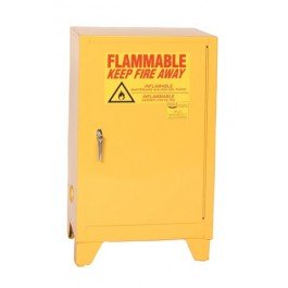 The Eagle Model 1924 Legs Safety Cabinet has all of the great features Eagle is famous for, plus the aesthetic and functional benefit of 4 inch legs. Now you can place cabinets over HVAC floor or baseboard vents, clean easily under cabinets, straddle uneven floors, wires or plumbing and increase ventilation to reduce possible corrosion. Each leg is adjustable to balance and level cabinets. Cabinets meet OSHA and NFPA Code 30. Yellow finish Only.