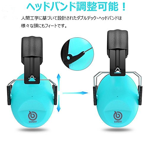 Earest EP-12 防音イヤーマフ 子供&大人兼用 ANSI S3.19認証済み 収納ポケット付き 折りたたみ型(水色)