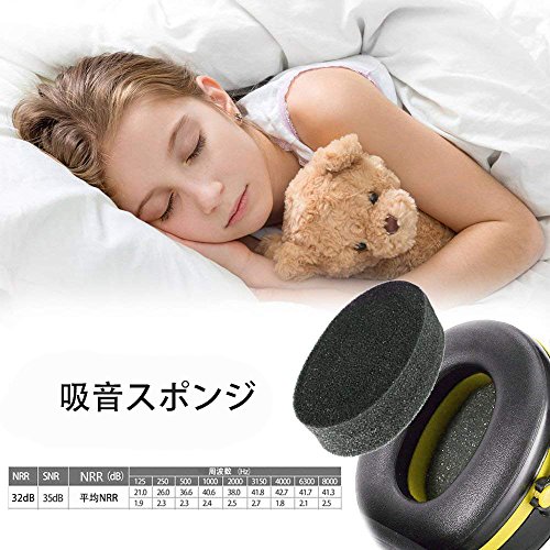 Earest 防音イヤーマフ 遮音値32dB 聴覚保護 ANSI S3.19&CE EN352-1認証済み 超弾力性ヘッドバンド 軽量 聴覚過敏・射撃 ・仕事・勉強・睡眠などに適用 イエロー
