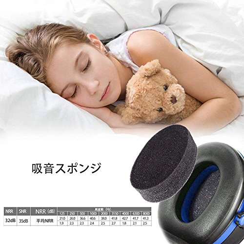 Earest 防音イヤーマフ 遮音値32dB 聴覚保護 ANSI S3.19&CE EN352-1認証済み 超弾力性ヘッドバンド 軽量 聴覚過敏・射撃 ・仕事・勉強・睡眠などに適用 ブルー