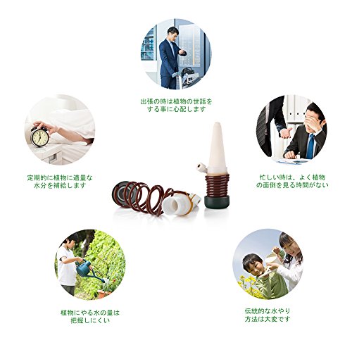 - 空のペットボトル容器に付けるだけで、留守の間の花鉢、観葉植物の自動給水に役に立つ給水用品です