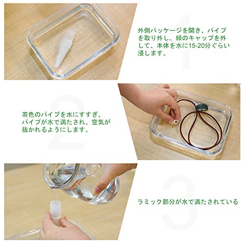 - 毛細血管現象を利用して水を吸い上げ、素焼き部分から水がにじみでてきて、植物の水枯れを防ぎます
