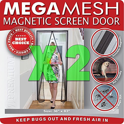 [ 2パック]磁気スクリーンドア – Heavy Duty強化メッシュ&フルフレームVelcro FitsドアUp To 34 " x82 " MegaMesh Comes with a 12月保証