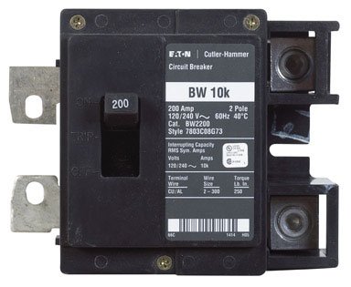 置換メインブレーカ200 AMPタイプBR loadcenters。メインのブレーカー、取り付けネジが折れている、2つのバストルクナット、および指示が含まれます。フィールド・インストールMains。# 2 – 300 kcmilワイヤ範囲にすることはできません。120 / 240ボルトのAC ; 000 AIR。