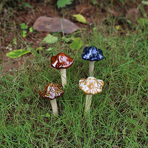 セラミック材料、環境に優しい、耐候性、耐久性と生実などで作られています。 4つの明るく美しい色、彼らは本当のキノコのように見えます。彼らはあなたの妖精の庭に色のタッチを追加する、非常にきれいで繊細です。彼らはあなたの花壇への素晴らしい装飾です、庭師はそんなに好きです。