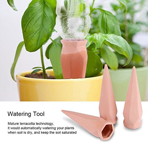 高品質のテラコッタ材質、良好な透水性と耐候性、長時間の耐久性があります。簡単に操作するには、ワインボトルやウォーターボトルなどの長いネックボトルを使用し、水道工具の口に入れます。屋外や屋内に適しており、旅行や出張の際に植物に水を供給するのに最適です。成熟したテラコッタ技術は、土壌が乾燥しているときに自動的に植物に水を供給し、土壌を飽和状態に保ちます。いつも外出して家から離れ、怠惰な人にも適している人のための便利で実用的な散水用具は、時間とエネルギーを節約します。