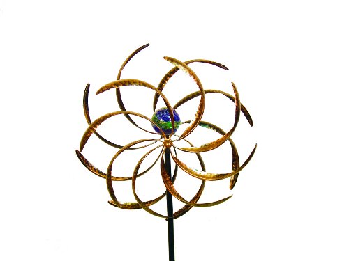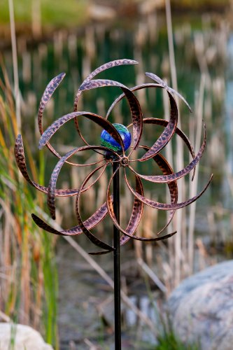 A beautiful clash of whimsy and kinetic motion with a glow in the dark twist. These glass and wrought iron sculptures spin and twirl with smooth motion with just the slightest breeze. Add some zest to your garden or patio.