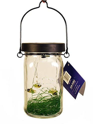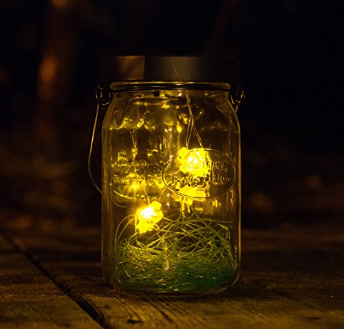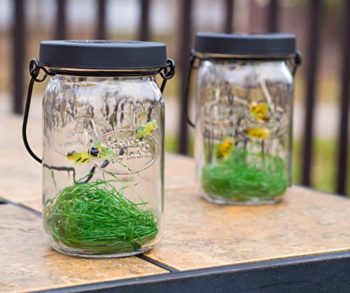 The FireFly Lantern is a modern twist on the average mason jar. Once the solar panel has charged in direct sunlight, watch your FireFly Lantern come to life. Each FireFly flickers intermittently. The jar can be easily hung or simply placed on a flat surface for your visual enjoyment.