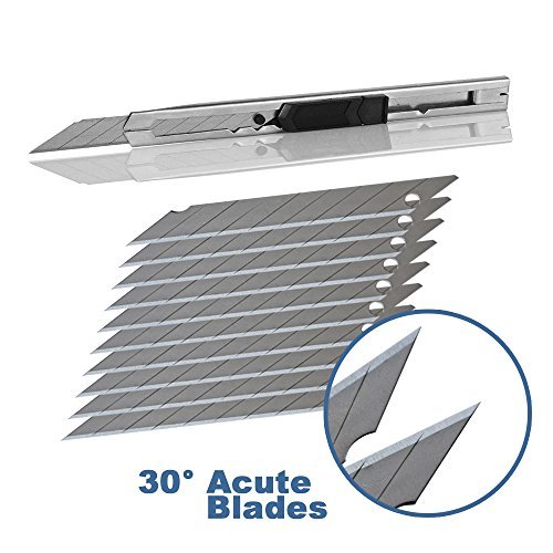 Ehdis 軽い替刃10枚入り 9mmスナップオフ 30度ブレード ステンレス鋼スチールシース ロック可能なカッターブレード グラフィックナイフ ブレードスナッパー付き 【替え刃10枚・セット】