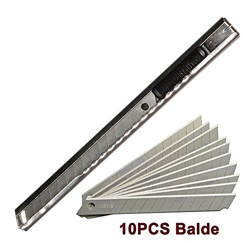 Ehdis 9mm収納可能ステンレス鋼のアートナイフ リトラクタブルフォールディングカッターナイフ カッター 切味が良い替え刃 10枚入り