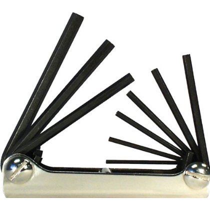 9-Pc Fold Up Hex Key Set 5/64-1/4In Housed in a one-piece comfort grip handle. Keys remain firmly in any desired work position Handle size 4.25' Includes 5/64, 3/32, 7/64, 1/8, 9/64, 5/32, 3/16, 7/32 and 1/4 Inch Key Sizes.