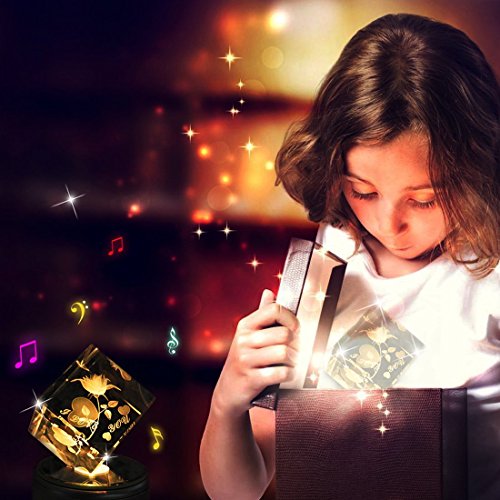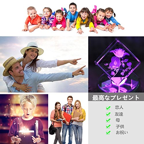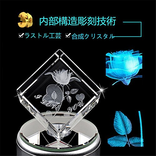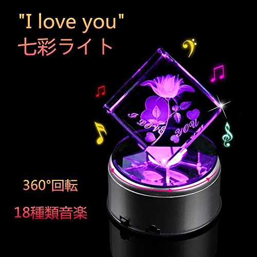 Eleclink クリスタルオルゴール "I love you" 七彩ライト 光るバラ 18種類音楽 USB ホタル ミュージックランプスタンド ぜんまい 付き 回転できる シングルサイクル 誕生日 結婚記念日 結婚祝い 卒業祝い バレンタインデープレゼント 女性 プレゼント クリスタルフラワー