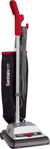Part of the Sanitaire Contractor Series, this powerful 7-amp upright features Quiet Clean operation that meets the LEED noise standards. 50-ft. detachable power cord eliminates down time and makes maintenance easy. Chrome steel VGII brush roll thoroughly sweeps a 12" path. Eight position height adjustment selects optimum cleaning for a variety of surfaces, while the furniture guard protects against scratches. Current: 7 A; Color(s): Gray; Red; Weight: 18 lbs; Cleaning Path: 12".