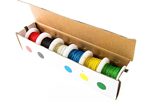 ワイヤラップワイヤキット、6つの30ゲージワイヤーのスプール、100フィートの各種類の色:レッド,ブラック,グリーン,イエロー,ブルー,ホワイト, 6スプール段ボールとその中に分配ボックスをオンにして、クリーンでフックアップワイヤーきちんとに保ち、