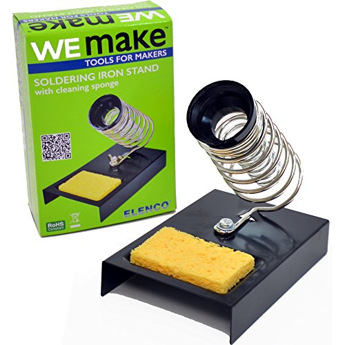 Standard issue Soldering Iron Holder for Pencil style soldering irons. Dual coiled springs to protect users and work from burns and damage. Sponge for tip cleaning. Metal base for stability and durability. For 30 years Elenco has been using their strong engineering and design skills to develop reliable, affordable electronic test equipment, tools, and educational kits