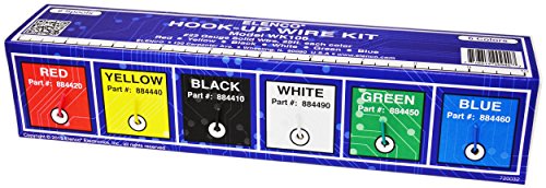 Contains six 25 ft. spools of #22 gauge solid, insulated copper wire - red, yellow, black, white, green, and blue in a dispenser box.