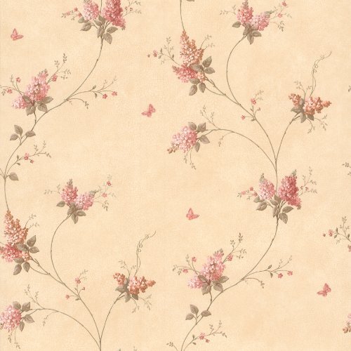 Brewster 436-66404 Isabelle Pink Butterfly Floral Trail Wallpaper Pink [並行輸入品]