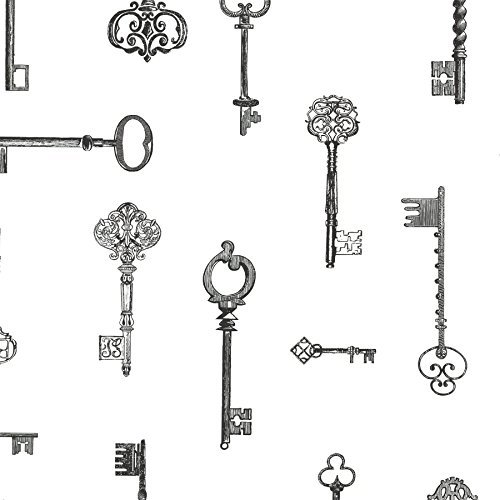 Brewster 2532-20423 Addison Vintage Keys Wallpaper Black [並行輸入品]