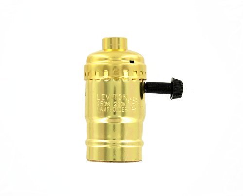 Leviton 7090-PG Medium Base Complete Aluminum Shell Incandescent Lampholder Removable Turn Knob 2-Circuit for 3-Way 2-Filament Lamps Brass [並行輸入品]