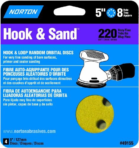 Norton 49155 8-Hole 220 Grit Hook and Loop Sanding Disc 5-Inch 4-Pack [並行輸入品]