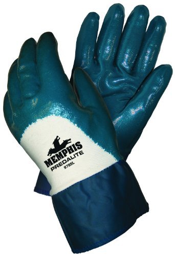 MCR Safety 9785L Predalite Nitrile Rubber Palm Coated Gloves with PVC Safety Cuffs Smooth Blue/White Large 1-Pair [並行輸入品]