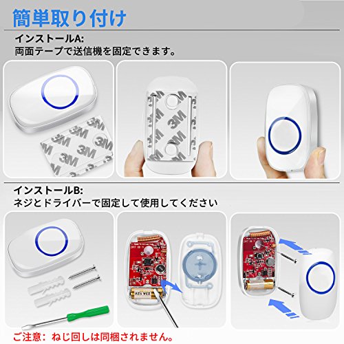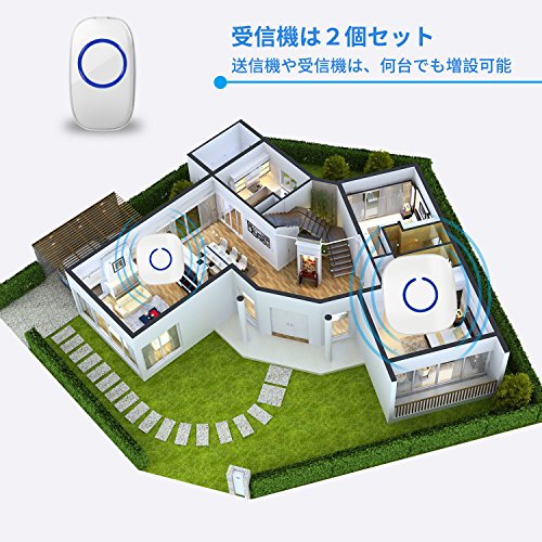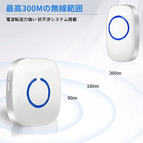 - 【300m無線作動範囲】ワイヤレスドアベルは高感度受信機採用で、電波の飛距離は屋外見通し抜群で、最大300mの無線範囲をサポートできます。家庭内、会社、事務所、店舗などの呼び 出しに便利であることなどでおすすめます。ご注意 鉄とスチールなれば、電波が遮断されて到達できません。 もしよろしければ、ドアそばにの壁に取り付けてください。