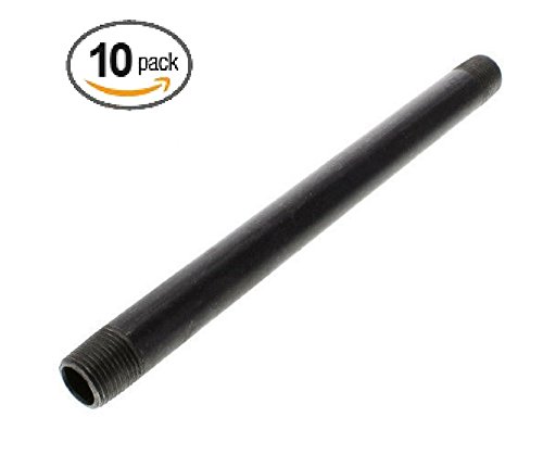 1 / 2 " x 12 "ブラックパイプ可鍛性ガススチール乳首継手 – ブラック仕上げ – 10パック