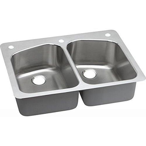 - Elkay DPXSR233222L 18 Gauge Stainless Steel Double Bowl Dual/Universal Mount Kitchen Sink, 33 x 22 x 8
