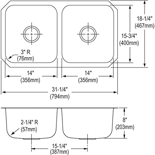 - Revere RCFU3118 31 x 18 Double Equal Bowl Stainless Steel Rounded Undermount Kitchen Sink