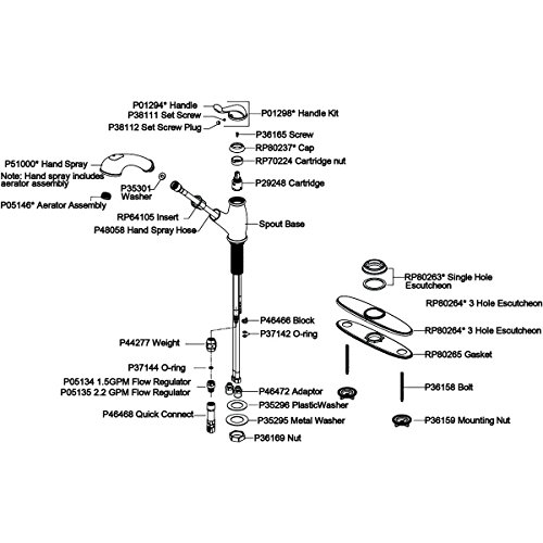 - 1.5 GPM flow regulator installed with 2.2 GPM flow regulator included