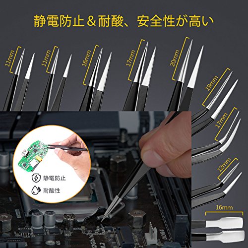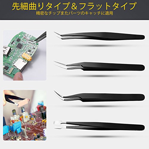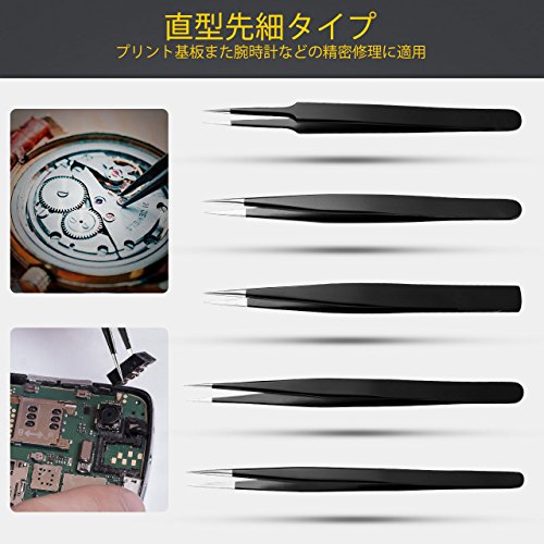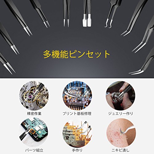 - 精密9本セット:フラットタイプ一本&先細曲りタイプ3本&ストレートタイプ五本で先端形状が異なる九本ピンセットついておりますので、様々な用途に合わせて使用することが可能です。電子機器、精度工学の産業、模型製作、シール貼り、エクステ作業などにプロや家庭の使用も適用です。