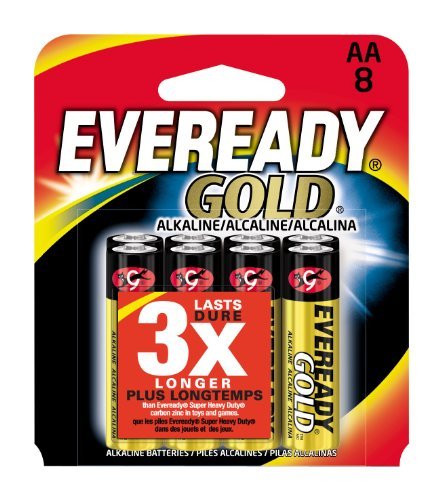 Eveready Gold Alkaline Batteries, AA 8 pack, a good value with good performance. Suitable for use in low to mid-drain devices such as toys, games, radios and clocks