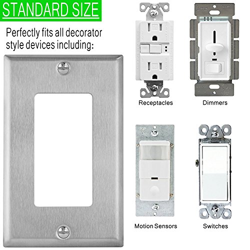 Enerlites 7731 1ギャング ステンレススチール 壁プレート 装飾スイッチ/コンセント/漏電遮断器に 2 Gang シルバー 7732-STICKERED