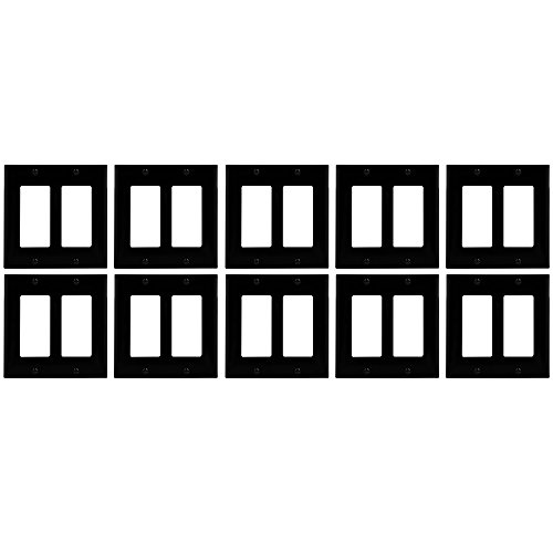 Enerlites Decorator /漏電遮断器Rocker壁プレート、標準サイズ、壊れないポリカーボネート Standard Size 2 Gang - 10 Pack ブラック 8832-BK